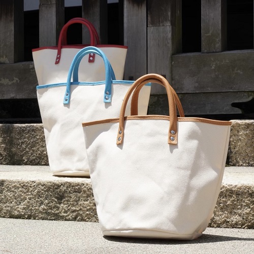 京都も朝晩はまだまだ寒いですが、少しづつ暖かくなってきました♪ 写真はグローブレザー×帆布のバケツトートです。 帆布の製品は年間を通してお使い頂け人気ですが、特に春から秋頃がご注文が増えます。 弊社の帆布は少し厚めのしっかりした帆布を使用しており使う程に革と共に帆布も馴染んでまいり…